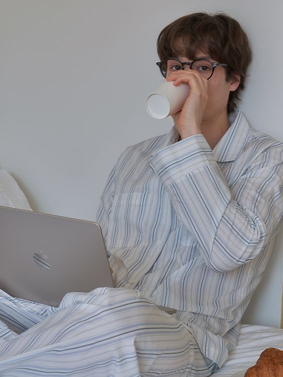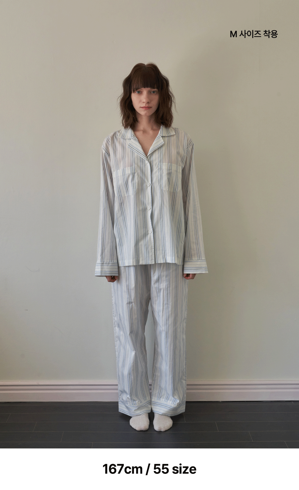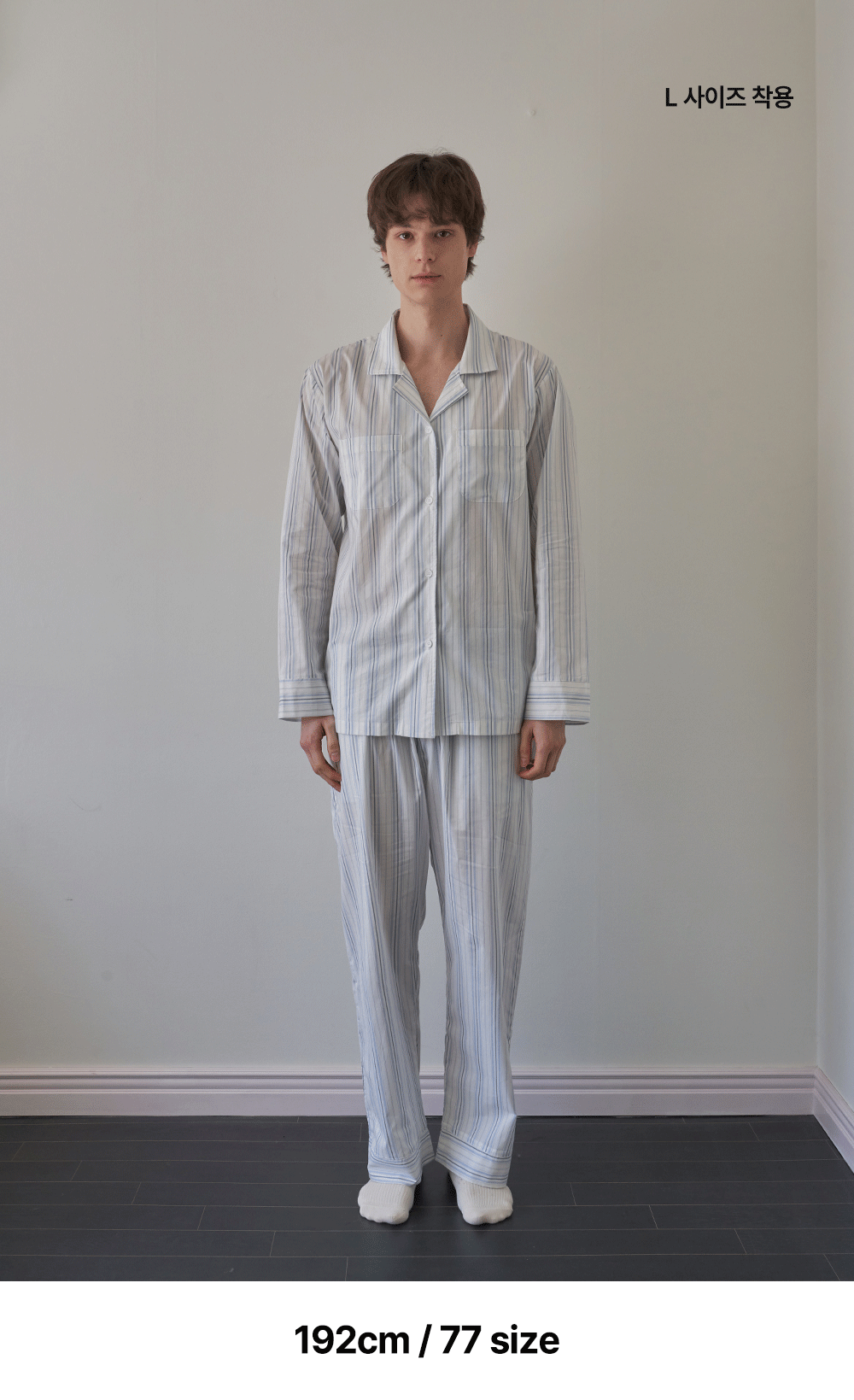 (uni) 미드나잇인파리 스트라이프 파자마 레브블루