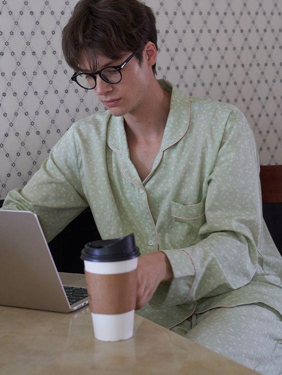 (uni)[모달] 가든오브파리 면모달 플라워 파자마 세트 올리브