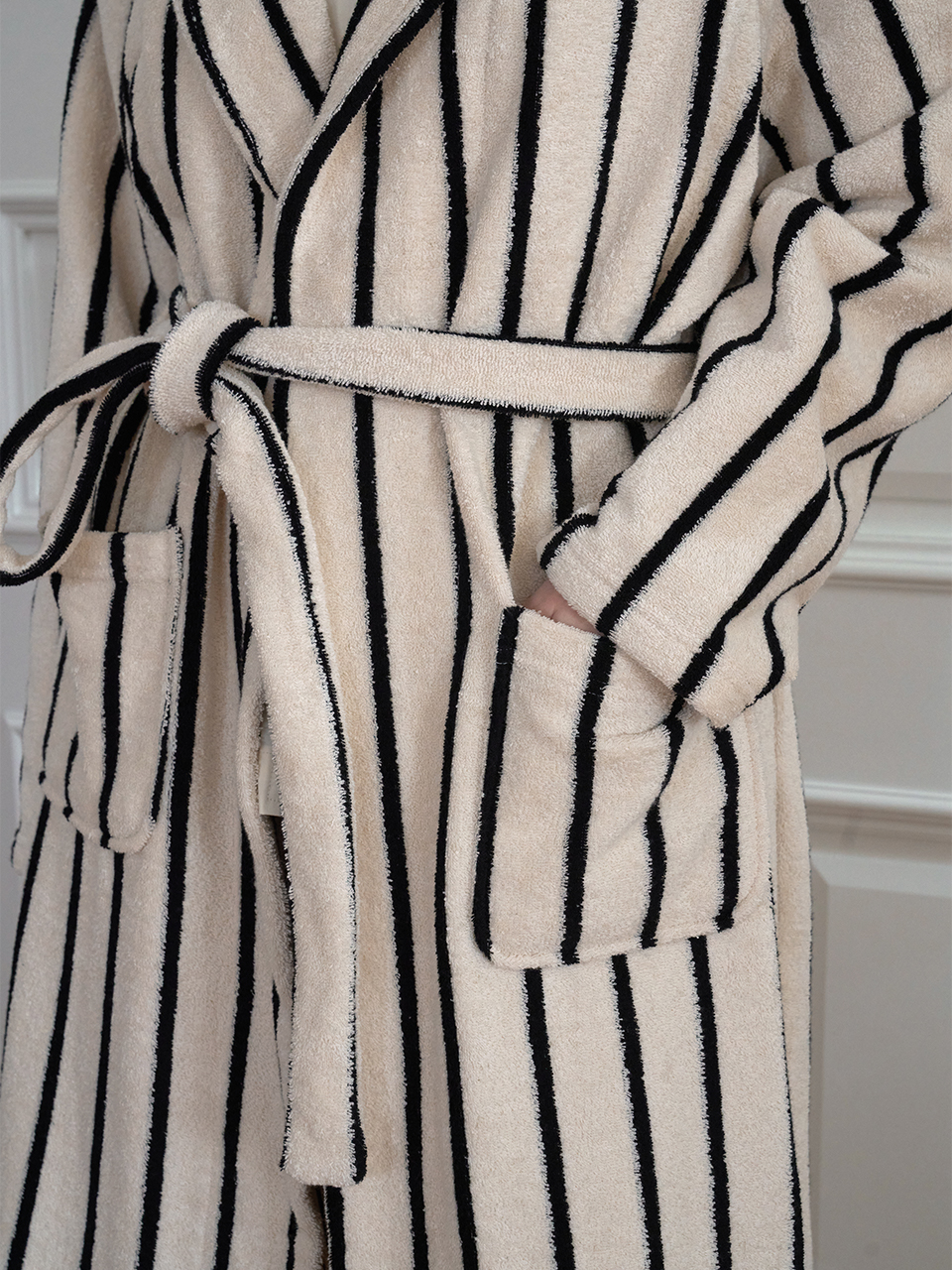 테리 소재의 부드러운 촉감이 물기와 피로를 포근히 덜어줍니다.여유로운 실루엣이 하루를 더욱 편안하게 만들어줍니다.