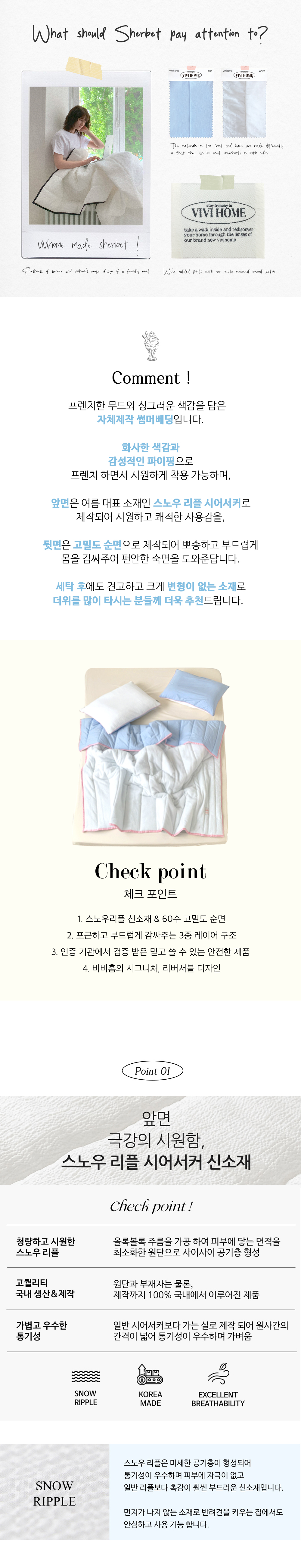 [뉴컬러] 셔벗 스노우리플 시어서커 고밀도 순면 차렵이불 (5color)