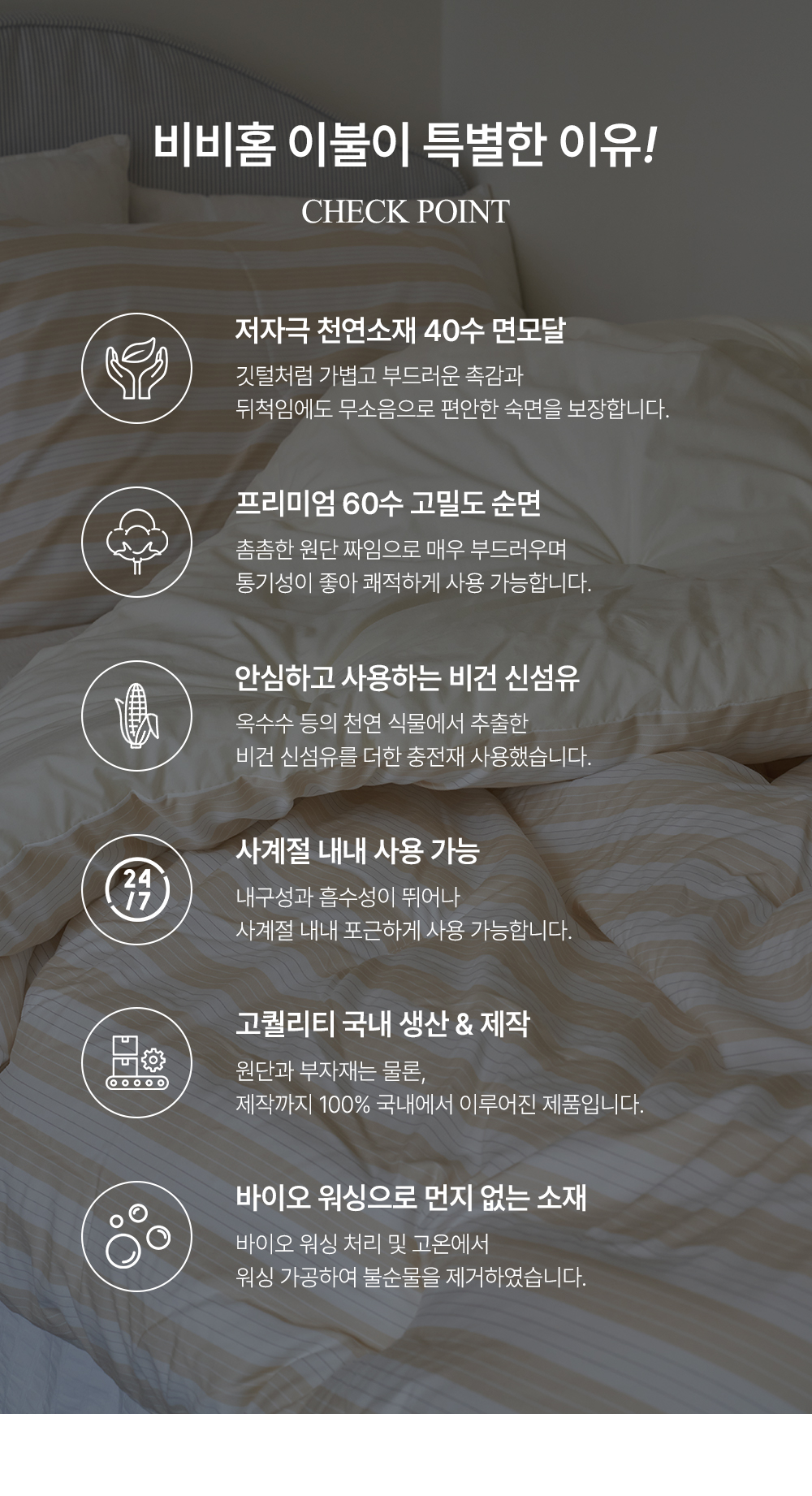 [사계절/봄여름] 어반 모달 스트라이프 무소음 양면 차렵이불 2컬러
