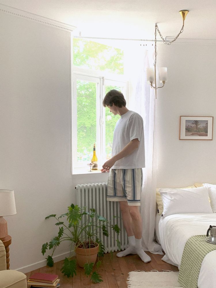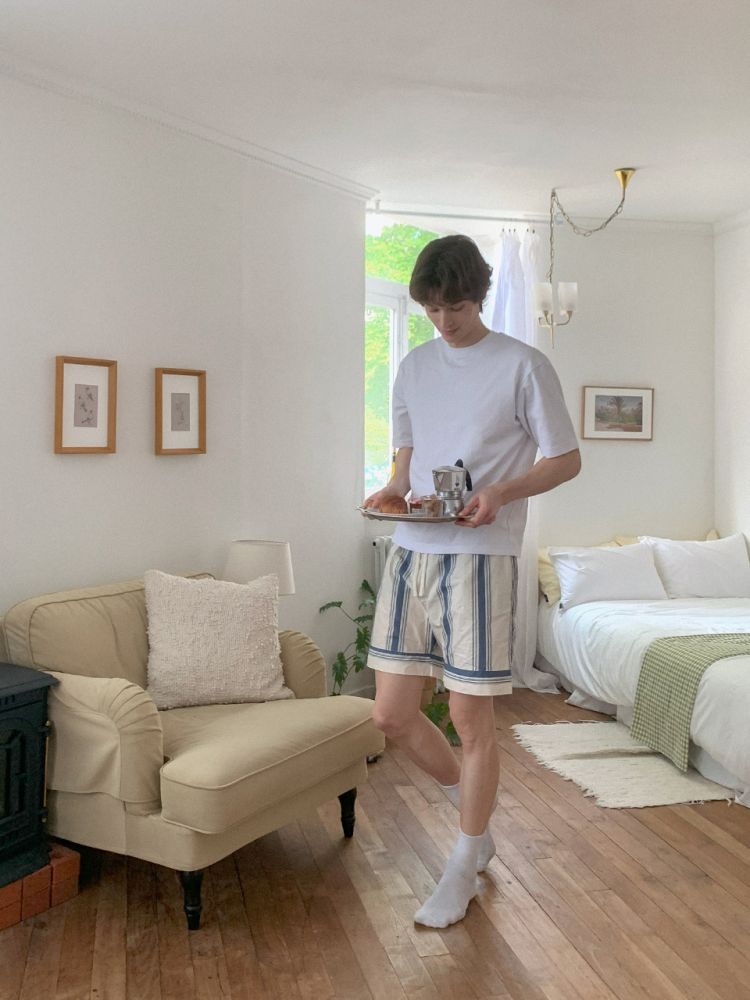 (uni) 네이비 볼드스트라이프 고밀도 순면 숏팬츠