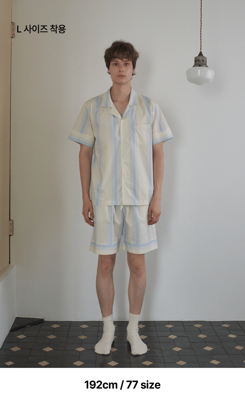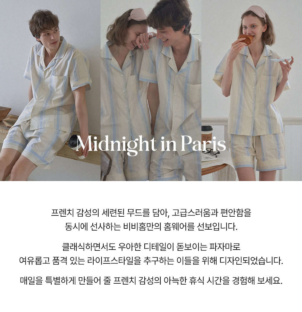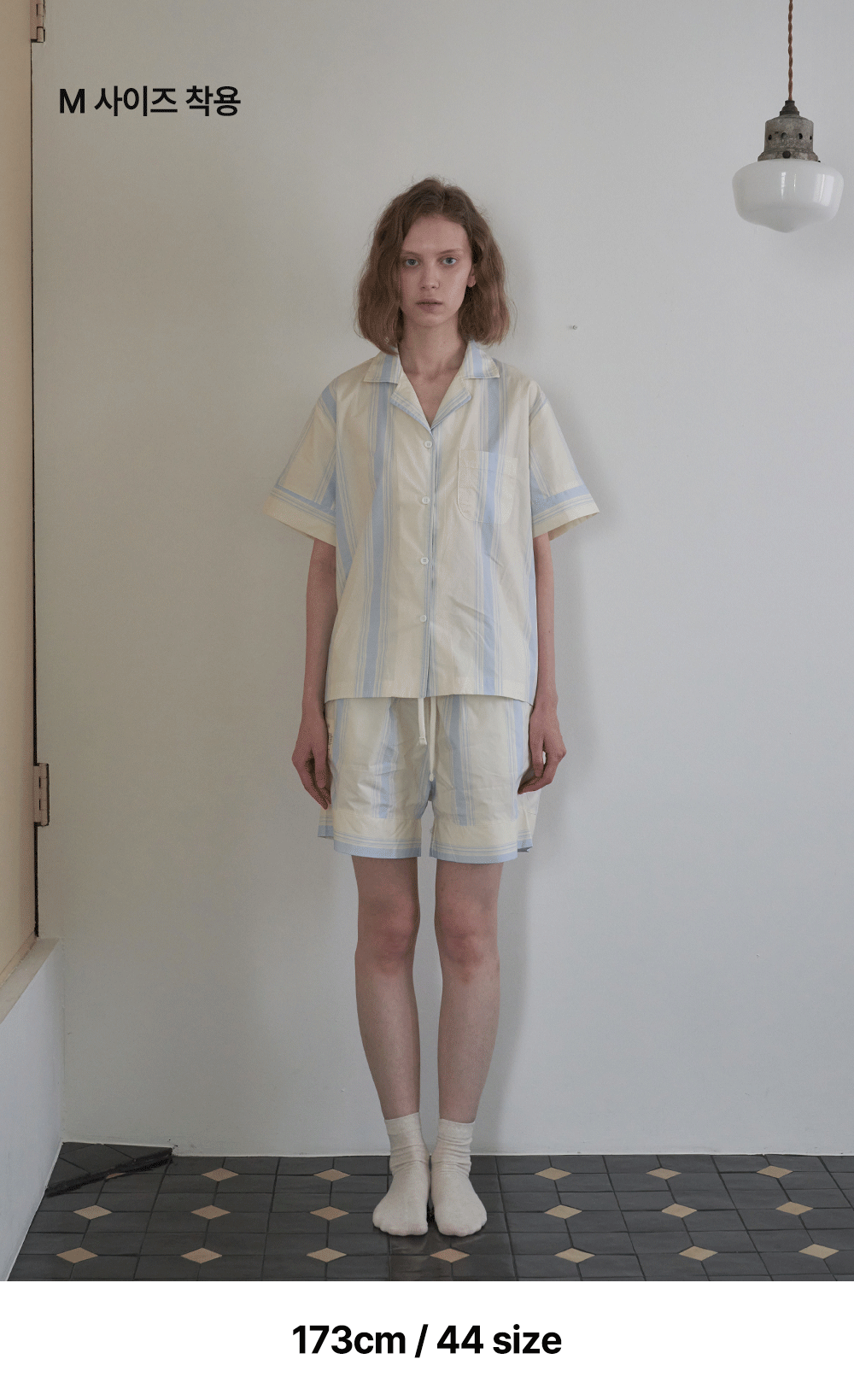 (uni) 미드나잇인파리 스트라이프 파자마 반소매 세트 코튼스카이