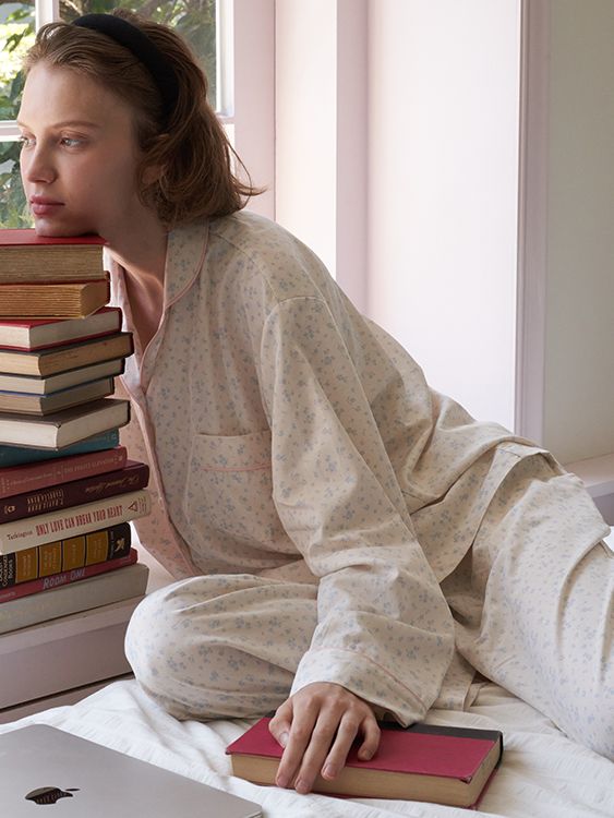 (uni)[모달] 가든오브파리 면모달 플라워 파자마 세트 아이보리
