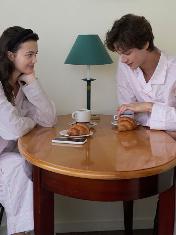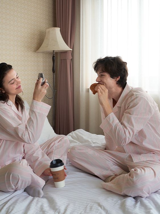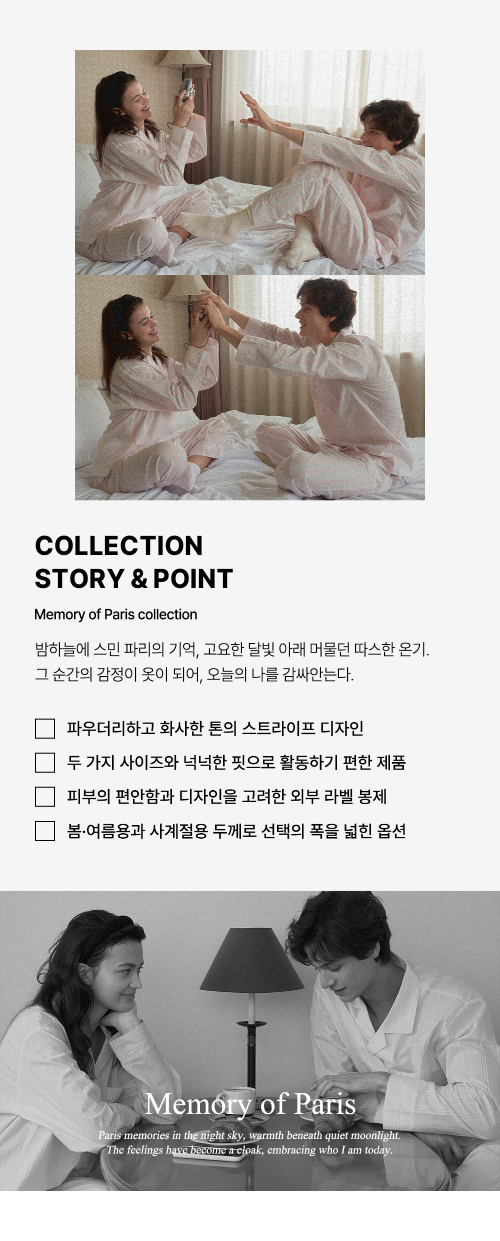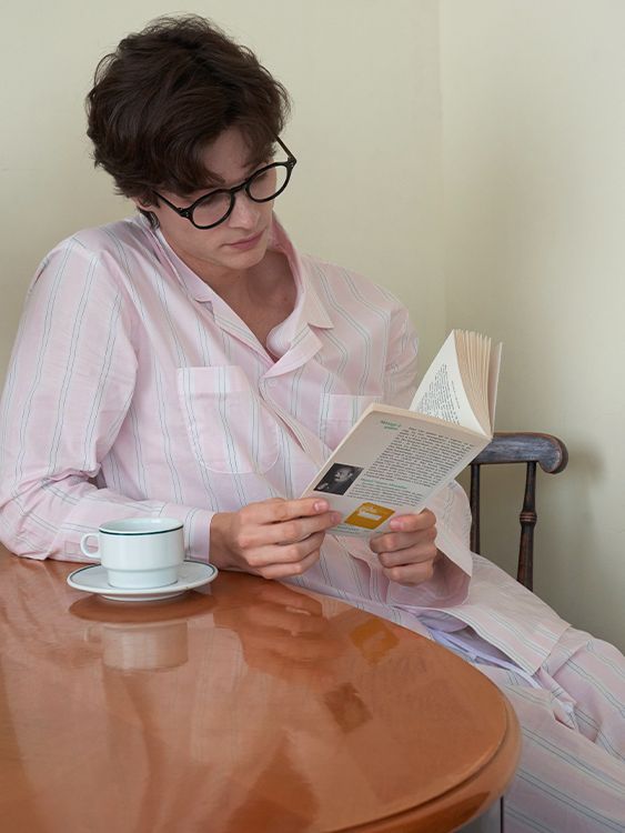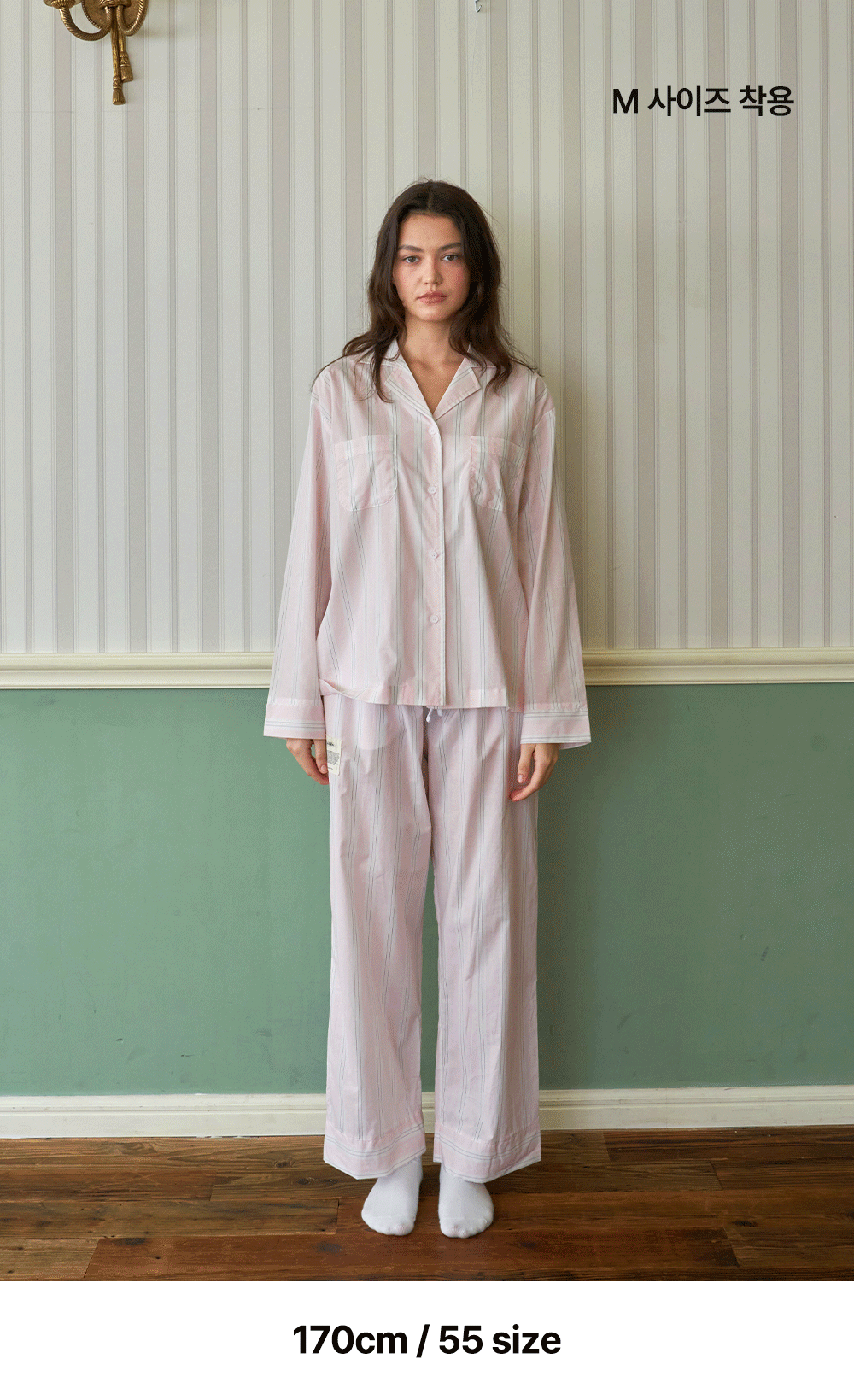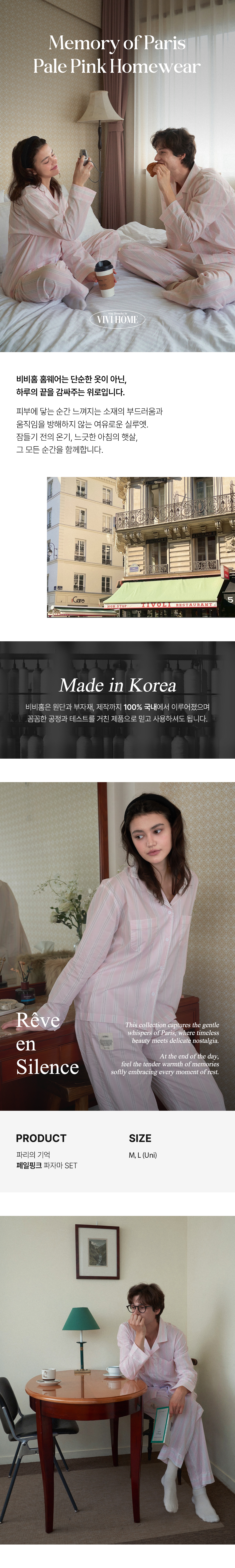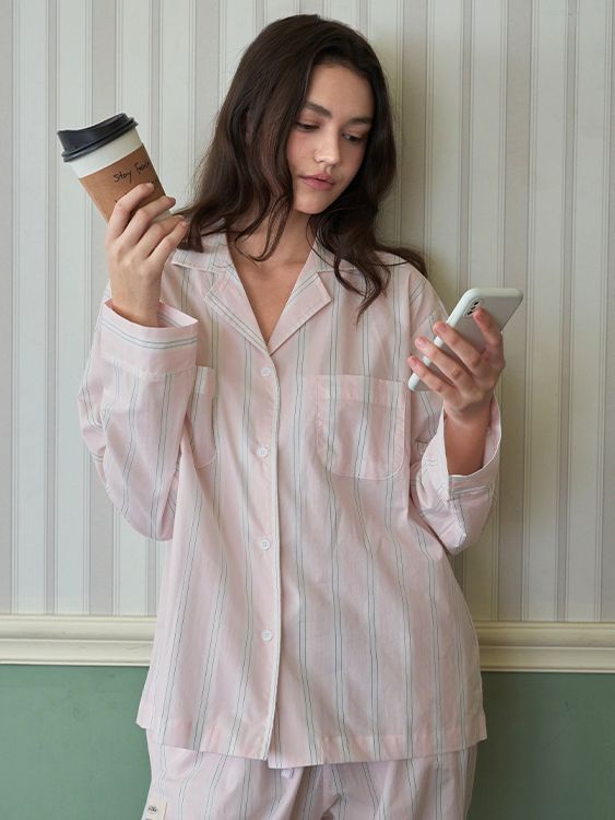 (uni)[모달] 메모리오브파리 면모달 볼드스트라이프 파자마 세트 페일핑크