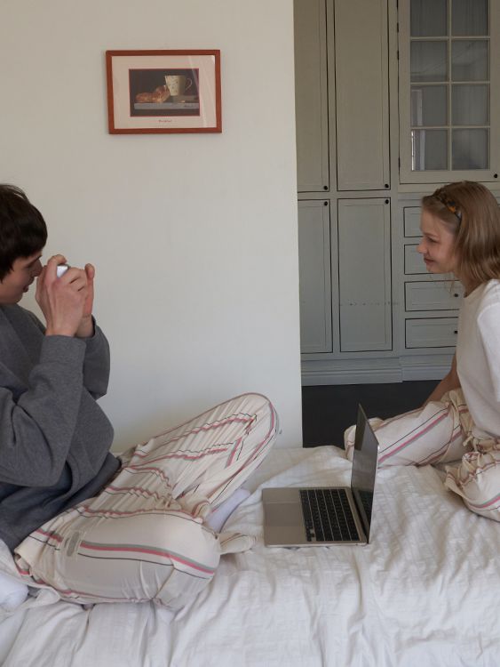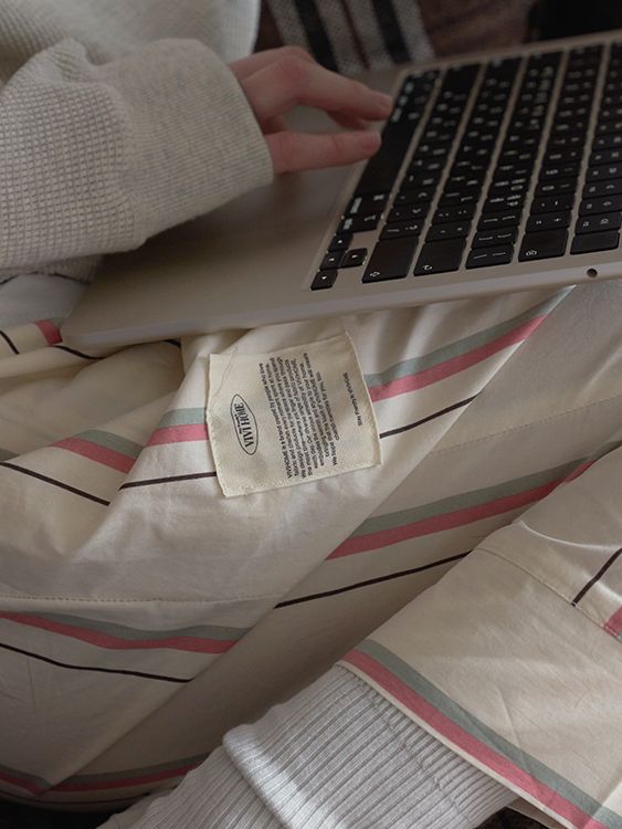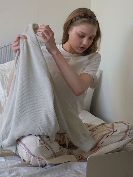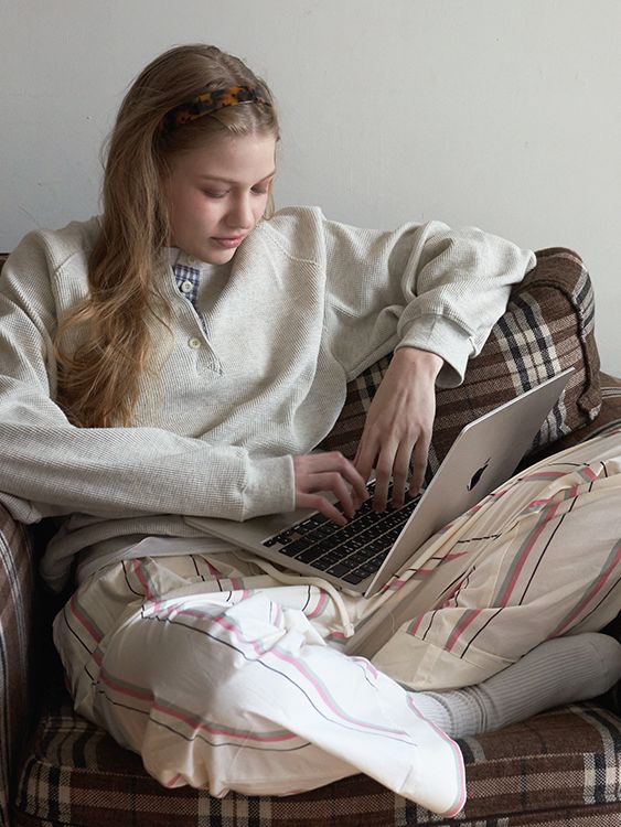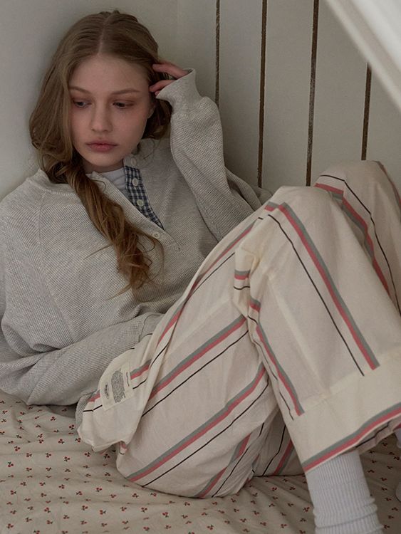 (uni) 비포선셋 블러쉬 스트라이프 고밀도 순면 팬츠
