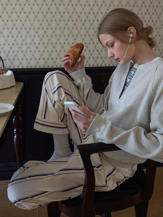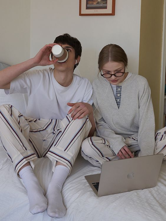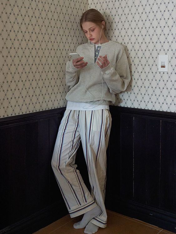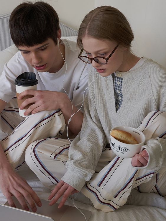 (uni) 비포선셋 에쉬나잇 스트라이프 고밀도 순면 팬츠