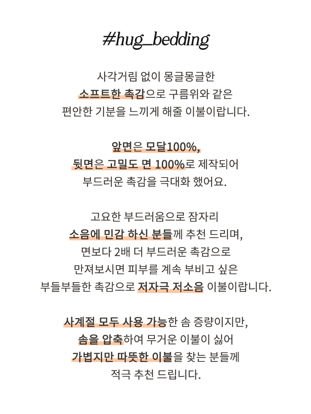 허그 모달 리버서블 고밀도 순면 차렵 이불 (4color)
