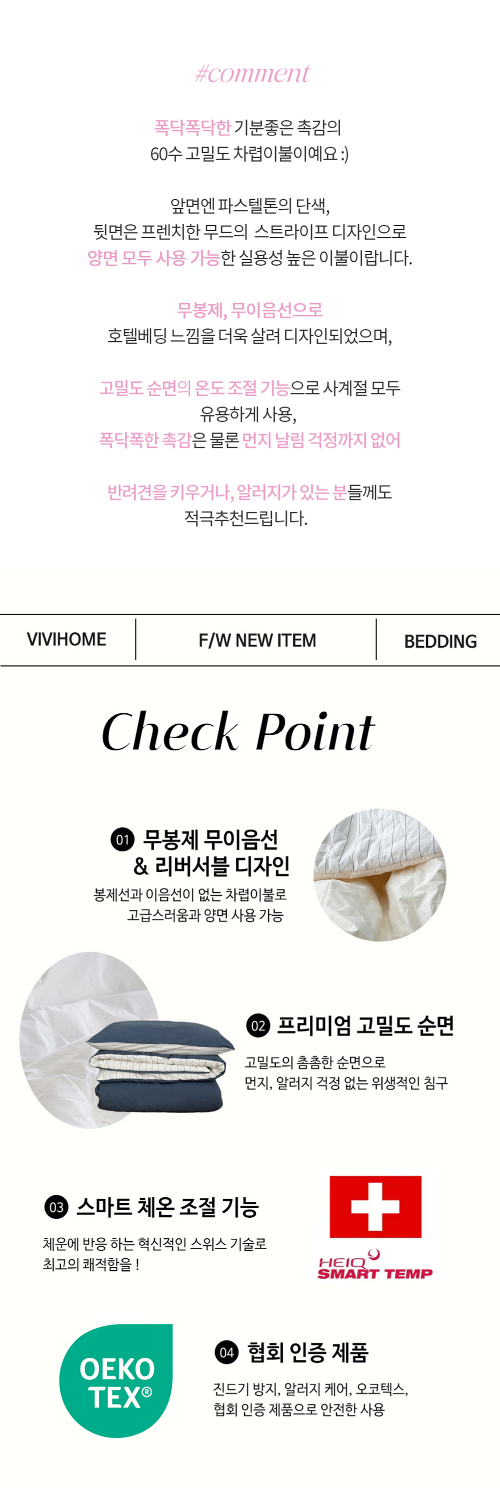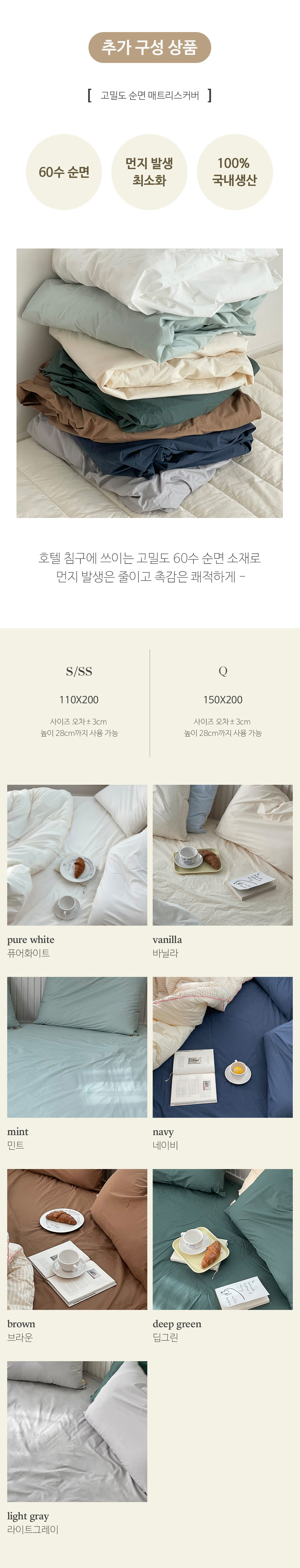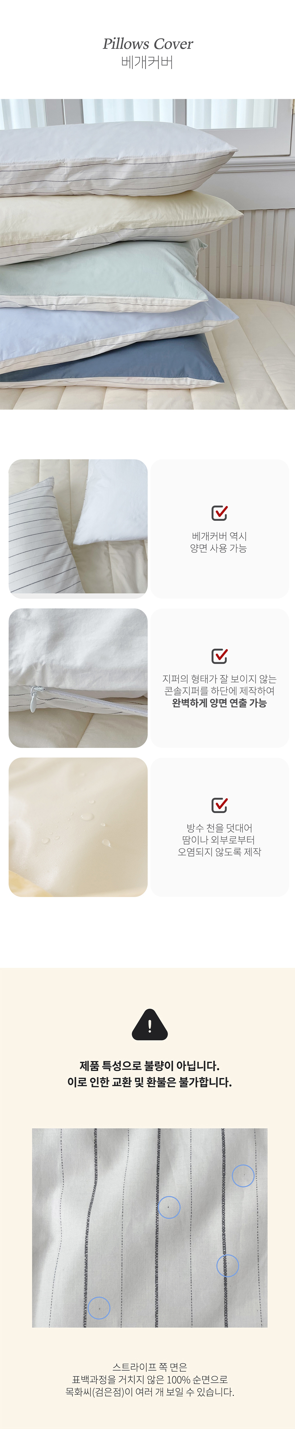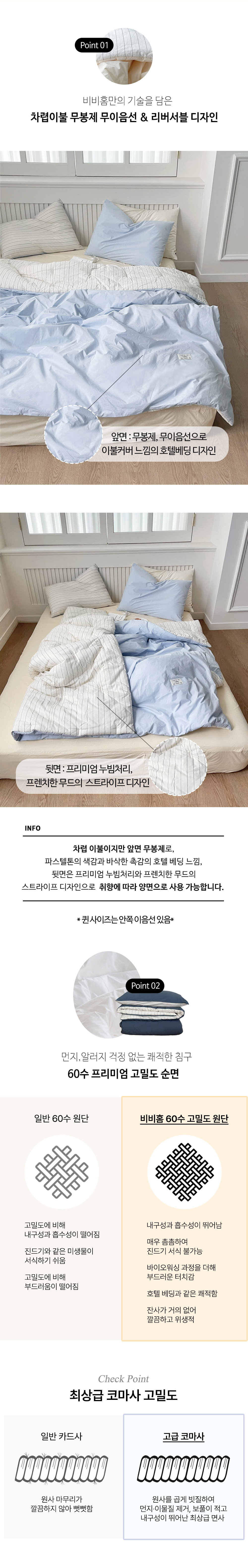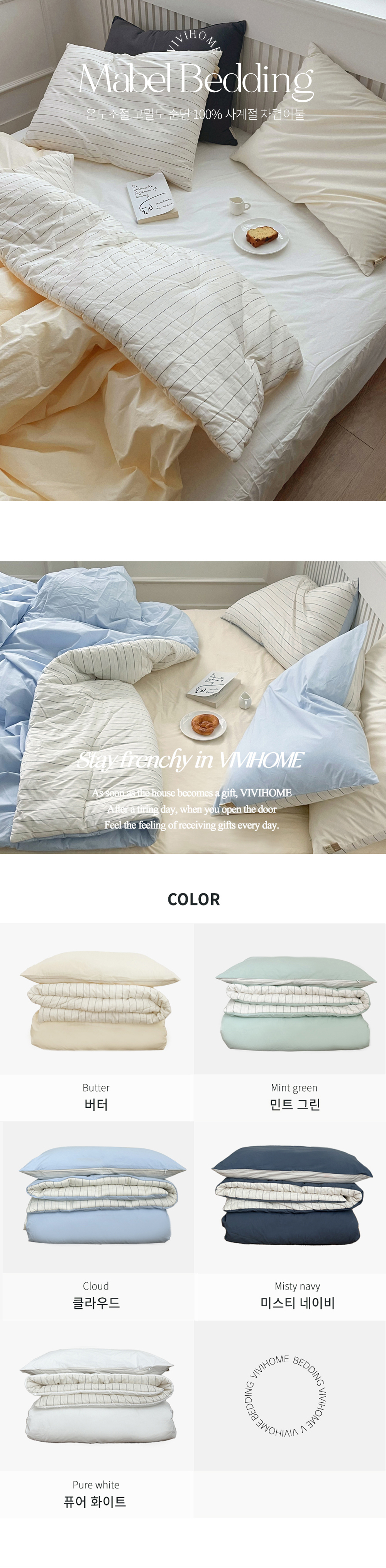 메이블 스트라이프 고밀도 순면 차렵이불 (5colors)